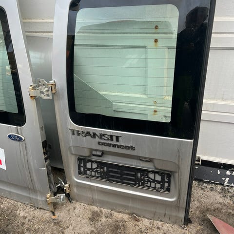 Ford bildør i hvit lakk. Døren leveres komplett med vindu og innvendig rammeverk slik som vist på bildene. Ytterplaten har synlig bulk og skader i nedre del. Passer som erstatningsdel eller til reparasjon. Conect 2017