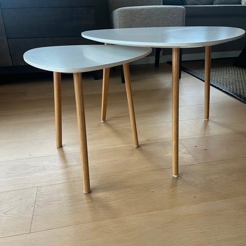 Porto lite sofabordsett Ø80/Ø60 cm. Hvitlasert eik finerbordplater og sort understell.