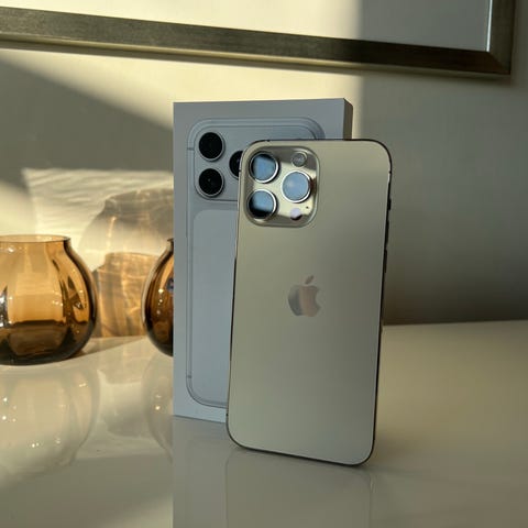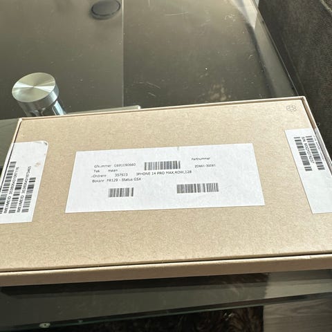 Apple iPhone 14 Pro Max mobiltelefon med 128 GB lagringskapasitet. Modellen har stor skjerm og trippelt kamerasystem på baksiden. Fargen fremstår som grå/mørk. Egnet for bruk med apper, surfing, foto og video, samt lagring av filer og medier.