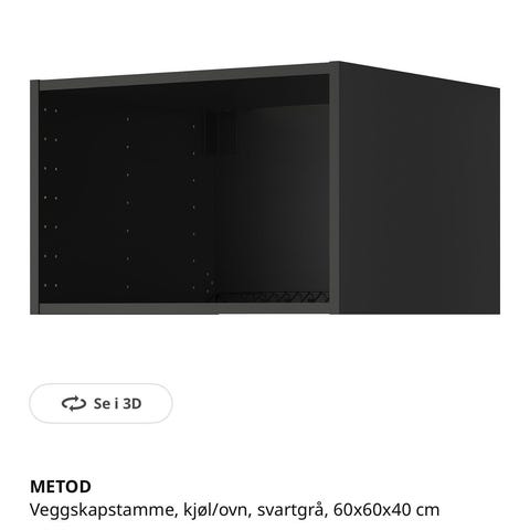IKEA METOD veggskapstamme kjøl/ovn i hvit . 60x60x40. Skapet er beregnet for kjøkken og har hull til justerbare hyller på innsiden. Passer sammen med øvrige METOD-moduler fra IKEA for en helhetlig kjøkkenløsning.