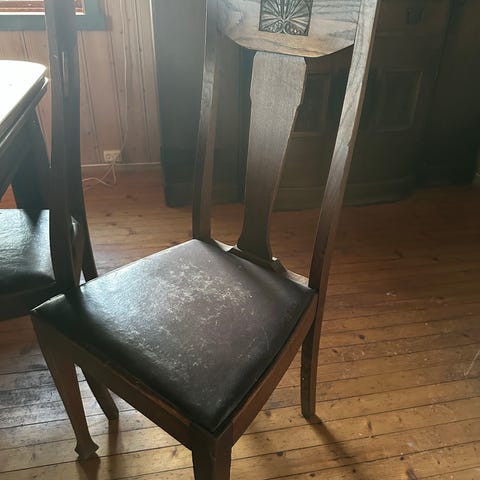 Enestående antikk skjenk fa tidlig 1900tallet. Håndlaget i heltre i furu. Overflaten er "odret", altså forsøkt beiset slik at skal ligne en annen tresort. Vanlig på den tiden. Seiner utsatt for feil rensing. Trevirke er ellers helt i orden. Skjenken har to rom med hyller og heltre dører med profilerte fyllinger og messingfargede beslag, samt to skuffer øverst. Overdelen har søyleformede stolper, dekorativ topp med dreid avslutning og plass til servise eller pyntegjenstander. Nøkkel til lås følger med, og beslagene har klassisk utforming. Møbelet egner seg som oppbevaringsmøbel i stue, spisestue eller gang, med god plass til servise, glass, duker eller annet utstyr.