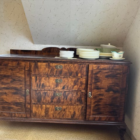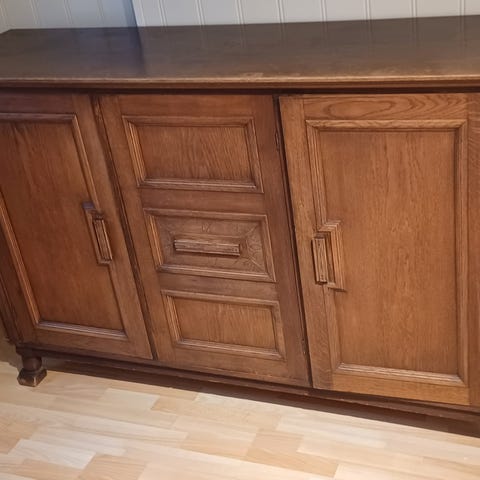 Antikk skjenk i beiset tre med overdel