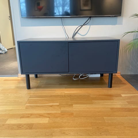 Vi selger vår fantastiske tv-benk fra Bolia. Den er i finert valnøtt, og har enormt mye plass. Tre skuffer og tre rom bak stoffdøren. Den må helst hentes innen 30.3., og er skikkelig tung :-)