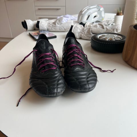 Mizuno Morelia Neo fotballsko i svart farge. Modellen har knotter til bruk på gressbane og overdel med snøring for god tilpasning. Skoene leveres med oppbevaringspose merket «Made in Japan» fra Mizuno. AG/FG-sko. Sønnen min har selv brukt disse på kunstgress og merket ikke noe forskjell fra vanlige AG sko.