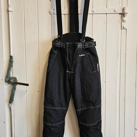 Bullfighter bukse i svart farge. Buksen har justerbare seler, forsterkede knær og sete samt lommer foran. Kontrast sømmer gir ekstra synlighet i sømmene. Passer til bruk på motorsykkel eller scooter, eller som ytterbukse der det er behov for slitesterkt materiale og god bevegelsesfrihet.