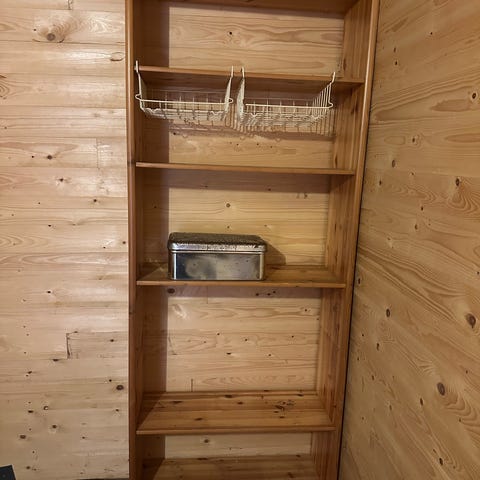 Stort IKEA garderobeskap i ubehandlet eller lakkert furu. Åpen ramme med plass til hylleplater eller klesstang etter eget behov. Passer som enkel garderobeløsning på soverom, gang eller bod, eller som ekstra oppbevaring for klær og tekstiler.æ leker Naturlig treverk som kan behandles eller males etter ønske for å tilpasses øvrig interiør. Esker i kan kjøpes på Ikea selges for 200 kr