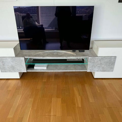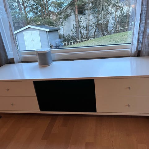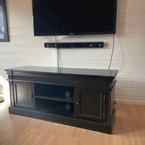 Target Audio Rack, med svart glass og hjul. Noen merker fea tejo som går å fjerne.