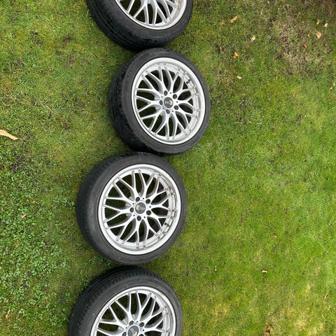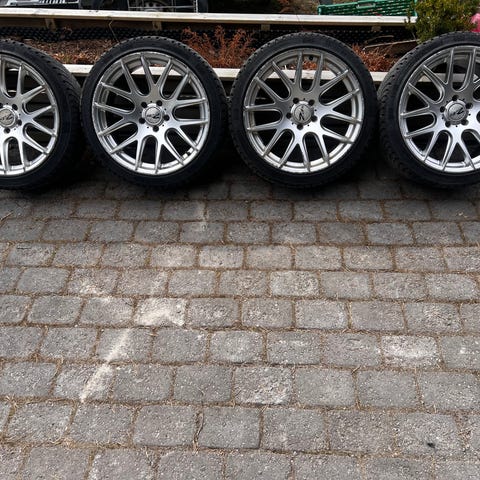 Hjulene er pent brukt og i god stand. Felgene har noen vanlige bruksmerker, men ingen store skader eller kast.