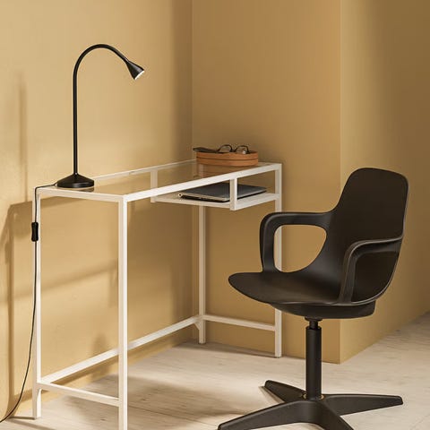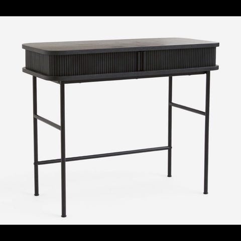 Bordet har en åpen hylle og en skuff på siden for oppbevaring av mindre saker. Den slanke rammen gjør at bordet tar lite visuelt plass og egner seg godt som arbeidsbord eller konsollbord i stue, gang eller soverom.