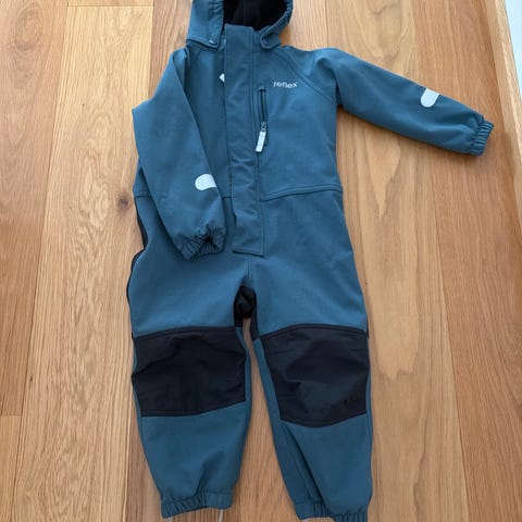 Reflex kjeledress for barn i størrelse 98. Dressen er blå og laget i polyester. Modellen er unisex og har hette, lange ermer og lange ben med strikk nederst. Forsterkede felt på knær gir ekstra slitestyrke. Elastiske fotstropper hjelper til med å holde bena på plass over sko eller støvler. Passer til bruk i barnehage og utendørs lek i overgangssesonger, avhengig av øvrig bekledning under.