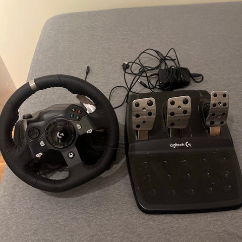 Lillebror selger sin Logitech g920 pga lite interesse for bil spill. Han kjøpte rattet for bil spill men fant ut at det ikke var for han.
