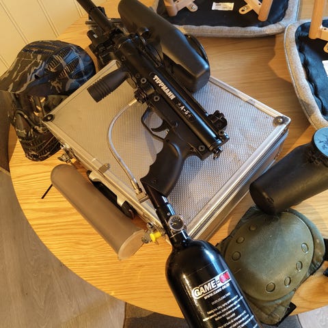 Selger en Tippmann Bravo One paintball markør med 2 stk HPA lufttanker og en overgang.