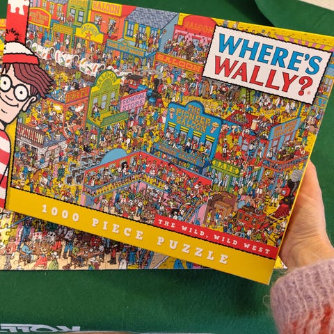 1) Where’s Wally 1000 brikker puslespill, motiv «Having a Ball in Gaye Paree». Klassisk let-og-finn-illustrasjon med mange detaljer og figurer.