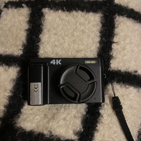 INF digitalt kamera 5K Ultra HD i svart. Kameraet har digital zoomlinse og leveres med avtakbar makrolinse, batteri, rengjøringsklut og brukerveiledning. På toppen finnes egne knapper for strøm og funksjoner, samt programhjul for ulike opptaksmoduser. Kameraet er egnet til generell fotografering og nærbilder med makrolinsen. Passer for brukere som ønsker et enkelt digitalt kamera til hverdagsbruk.