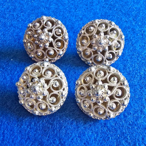 Original bunadsknapp 20mm gullsmed Johan Lund (J.L.) rosettmønster forgylt sølv