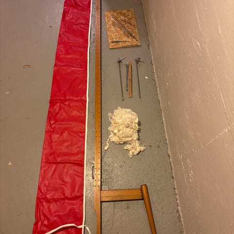 Vevramme og tilbehør for håndknytting av persisk teppe tre metall