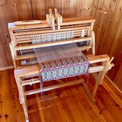 Vevramme for håndknytting av ditt eget persiske teppe i kombinasjon av tre og metall. Rammen står på bord og har metallstenger på sidene som stabiliserer konstruksjonen. Over- og underkant er i tre med tette spor til renningstrådene. Det er montert renning på rammen, og en enkel metallmekanisme foran holder trådene stramme. Egnet til mindre vevprosjekter som prøver, små tepper, bilder eller andre tekstilarbeider. Passer til bruk hjemme, på skole eller i verksted der man ønsker en enkel rammevev uten avansert mekanikk. Det følger med diverse utstyr til knytting, stramming og klipping samt en flat trepinne og teppemønster.