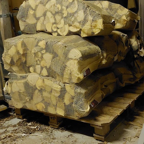 Har både tørr ved og fersk for selvtørk.