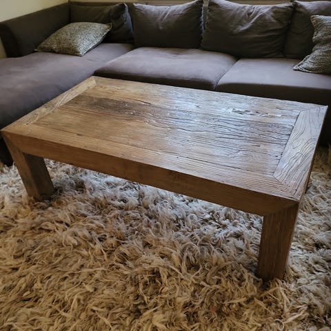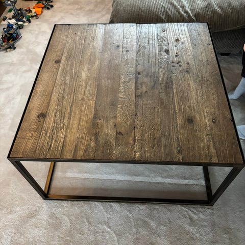 Metallramme, rustikk, trestruktur, stuebord salongbord.