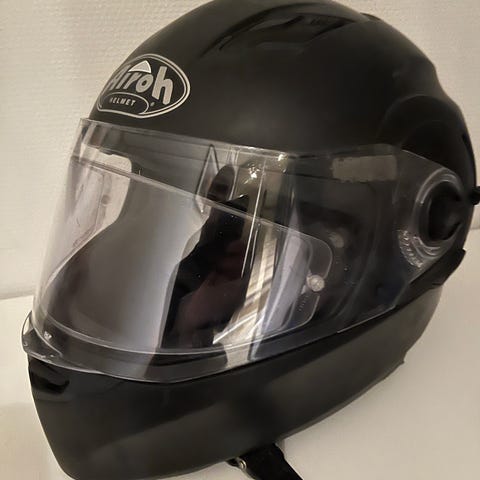Hjelmen er ikke brukt siden ny. Har noe små merker i lakken noen steder samt en liten ripe i visir, men fremstår ellers i utmerket stand. Ny pris er 1299,-