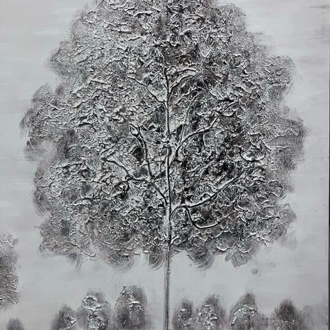 'Vintertre' Akryl på dypt lerret, 50x50 cm. Pris kr 2500,- inkl kunstavgift. Kan sees i 2. etg på Nysted, Elverum kunstforening hvis du er i nærheten. (Olav Schulstads veg 2, Elverum) Åpent helgen 11./12. og 18./19. og 25./26. april kl 12-16 i forbindelse med Vårutstillingen.