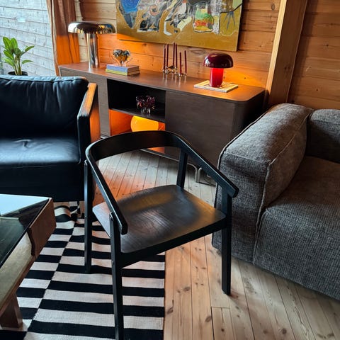 Et fantastisk møbel vurderes solgt. Nydelig design og et smykke av et møbel. Bordplaten bør få en shine da det stedvis er noen krakeleringer i lakken. Ellers er det i overraskende fin form gitt sine 70 år… Kom gjerne med et knakandes godt bud. Kan være behjelpelig med frakt sentralt på Østlandet.