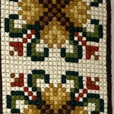 Broderisett til duk, mønsterark og broderigarn i flere farger. Settet inneholder stoff til løper, fargede tråder og mønster med tradisjonspreget kantbord og figurer. Egnet til håndbroderi for den som ønsker å sy egen løper til bord eller kommode.