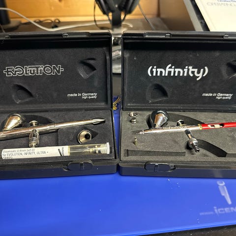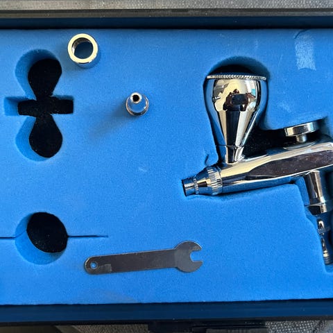 Kompressoren drives av 12 V adapter (medfølger) og har tilkobling for medfølgende slange. Airbrushen er egnet til presisjonsarbeid som modellbygging, hobbyprosjekter, illustrasjon eller annen detaljert lakkering og maling hvor det er behov for kontrollert sprøyting av maling eller andre væsker.