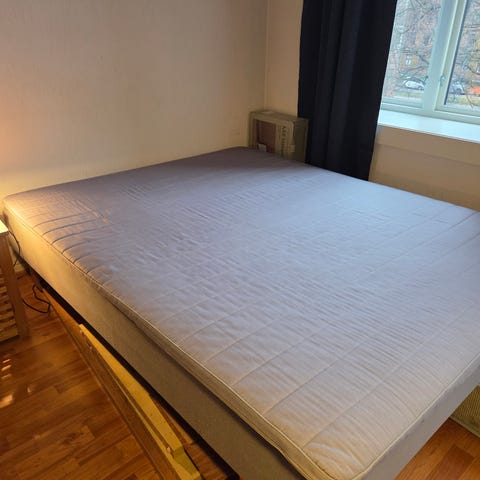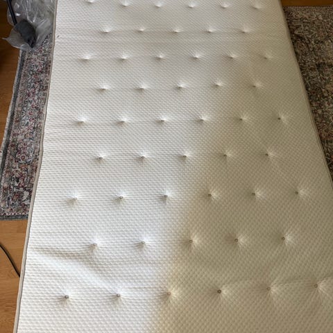 Overmadrass: Tistedal. Kjøpt ny for mindre enn fem år siden. Synlig flekk, men ellers i god stand.
