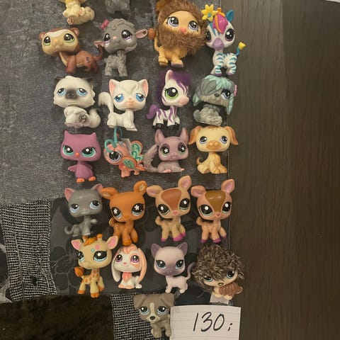 Littlest Pet Shop figursett med blandede dyr. Settet består av flere små plastfigurer i ulike farger og varianter, blant annet katter, hunder, kaniner, fugler og andre dyr. Figurene er beregnet for lek og samling for barn. Egner seg til rollelek, samling og som tilbehør til andre Littlest Pet Shop-leker.