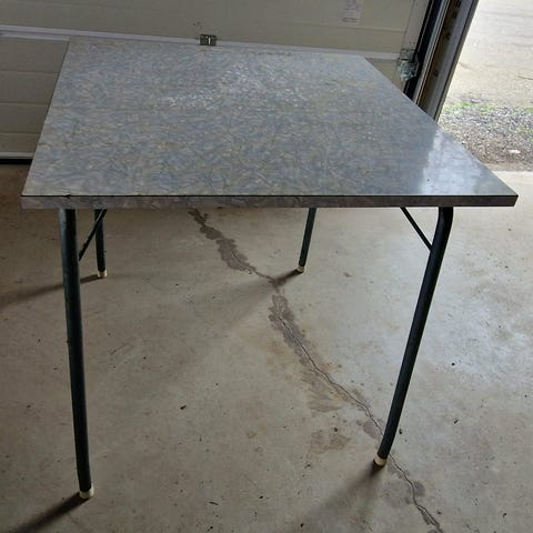 Godt brukt retro respatex kjøkkenbord med mange minner. Har noen hakk på siden. Fungere fint. Bordet har 2 klaffer som kan dras ut på hver side.
