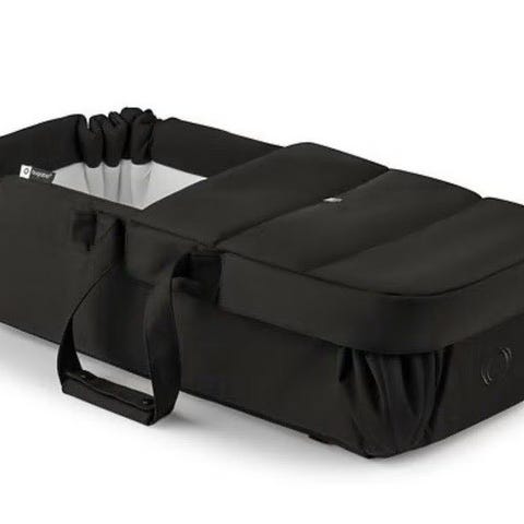 Petite Chérie Solide+ bagdel til barnevogn i svart. Bagdelen er en myk bærebag som kan brukes i vognens understell for spedbarn. Den har bærehåndtak på sidene og myke kanter som gir støtte rundt barnet. Innvendig er den polstret for økt komfort. Egnet til bruk fra nyfødt og opp til den maksimale vektgrensen som er oppgitt av produsenten. Passer til barnevogner som er kompatible med Petite Chérie Solide+ bagdel.