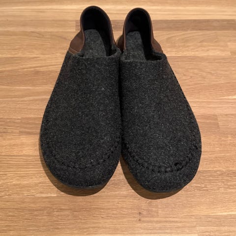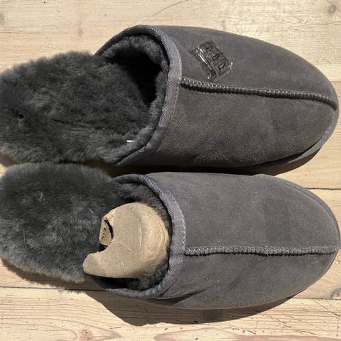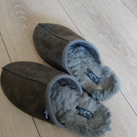 Jean Paul tøfler i størrelse 45. Tøflene er i en brun fargetone med ekte mykt saueskinn.