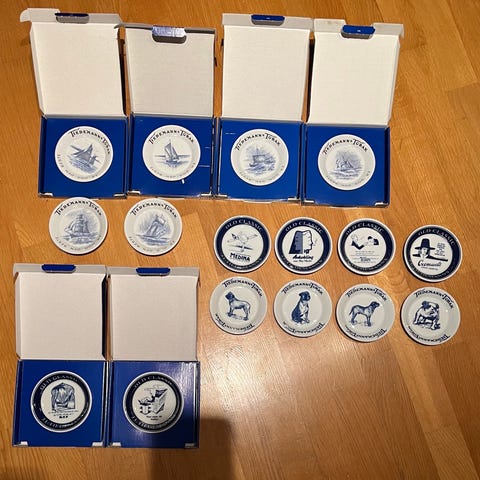 J.L. Tiedemanns Cromwell Old Classic askebeger i blått og hvitt porselen. Motiv med portrett og tekst «Cromwell Turkish Cigarettes» rundt kanten. Rund form med opphøyd kant. Egnet som askebeger eller dekorativt samleobjekt. Produsentstempel under bunn.10 stk som selges for 1500kr
