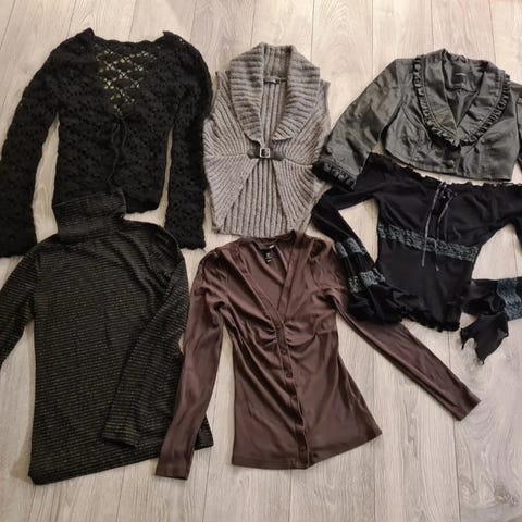 26 gensere av forskjellige slag. Strikka gensere, tettsittende gensere, kose genser osv. str xs- m