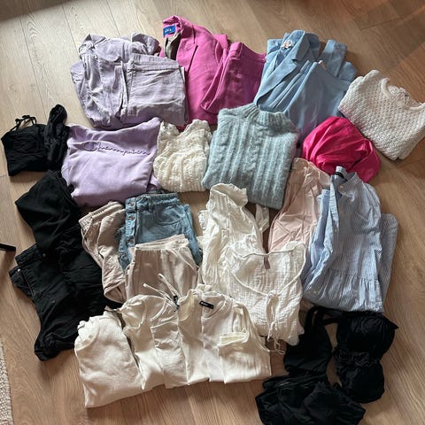 Jenta i huset har kjøpt seg klespakke og selger videre det hun selv ikke vil ha :)