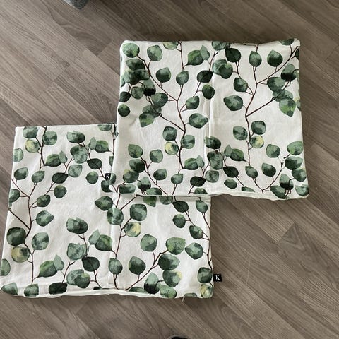 Putetrekk fra Kremmerhuset med Bladmotiv. Str 50 * 50 cm.