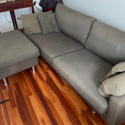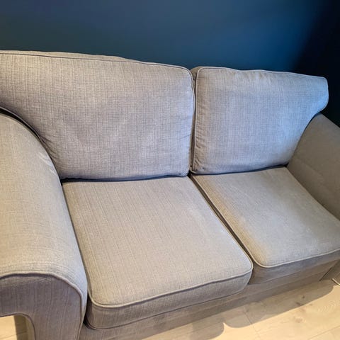 Vi kjøpte denne sofaen billig og har prøvd å vaske den, men den har en lukt som vi ikke får bort. Mulig det kan hjelpe med en rensemaskin.