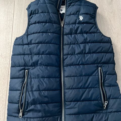 Helt ny og ubrukt dunvest fra U.S. Polo Assn. i mørk blå farge. Str XS, men passer fint til en som er rundt 178 cm (normal/slim fit). Ingen bruksmerker eller feil. Lett og varm, perfekt til høst og vår.👌