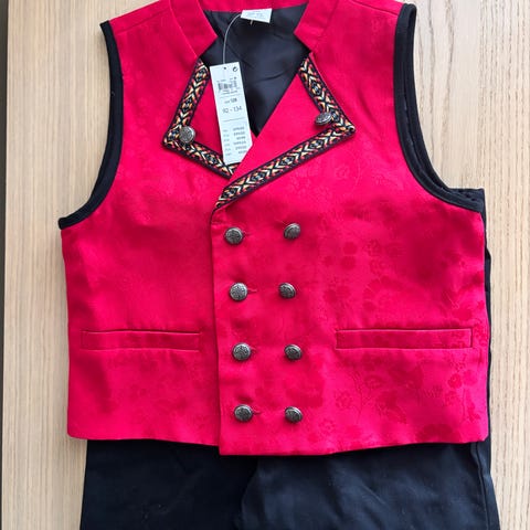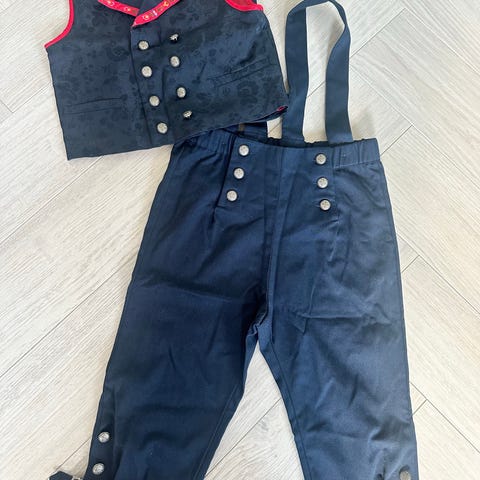 En helt ny og ubrukt festdrakt med lappen på og fine detaljer i str 98 cm, 3 år. Ny pris 700 kr.