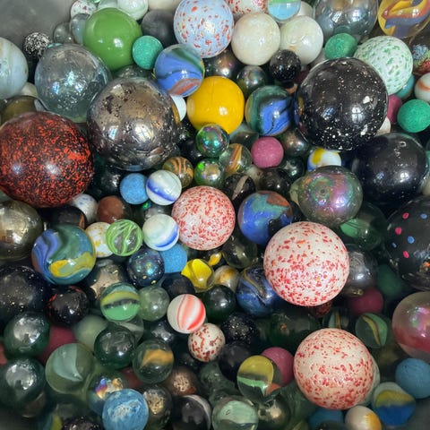 Kulene er samlet siden 2000s tallet så det er unike kuler som ikke selges lengre på markedet. Boksen er 7-8 kg tung så det er mange kuler.