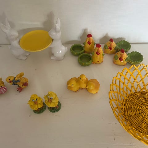 Alle tre er hele og ca 10 cm lange. Fine alene til godterier eller egg eller som del av en påskedekorasjon. Selges samlet godt pakket,