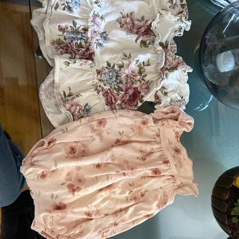 Fikk disse i gave når jenteungen ble født, men hun har vokst ut av størrelsen, så da får vi dessverre ikke brukt de. Selges derfor billig.