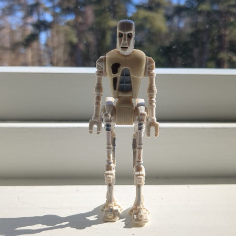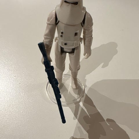 Riflen tilhører Dengar/Snowtrooper, da den har 2 håndtak. Den korrekte til denne figuren er tilnærmet identisk, men med kun ett håndtak.