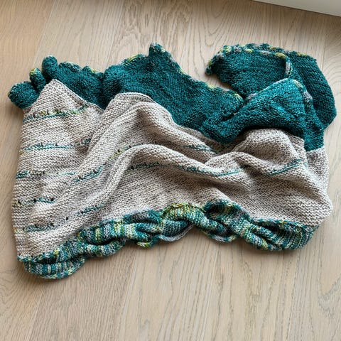 Hjemmestrikket sjal etter mønster fra Stephen West.