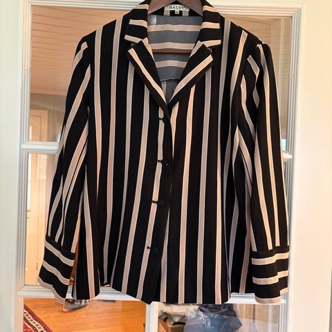 Selger min vakre cardigan fra Stitch Spring, inspirert av Obanai Iguro fra Demon Slayer. Den er i størrelse M og helt ny. Jeg har bestemt meg for å selge den fordi jeg ønsker en annen størrelse. Denne modellen er utsolgt på Stitch Spring sin nettside.