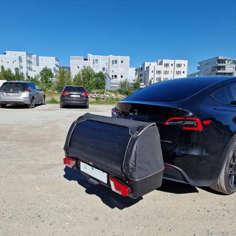 Har skilt som holder vannfast sprittusj for synlig skiltnr på bagasjeboksen.