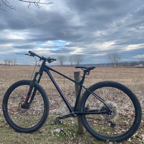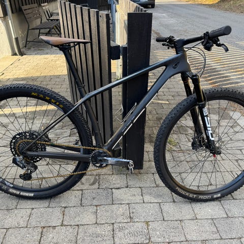 Selvbygget terrengsykkel for herre med rammestrørrelse M og 29" hjul. Sykkelen har stiv ramme i karbon og er utstyrt med skivebremser. Passer til terrengsykling på grus, sti og skogspartier. Rammen er tilpasset voksen rytter og hjulstørrelsen 29" gir god framkommelighet over ujevnt underlag. Sykkelen har flat styretype og girsystem egnet for variert terrengbruk.