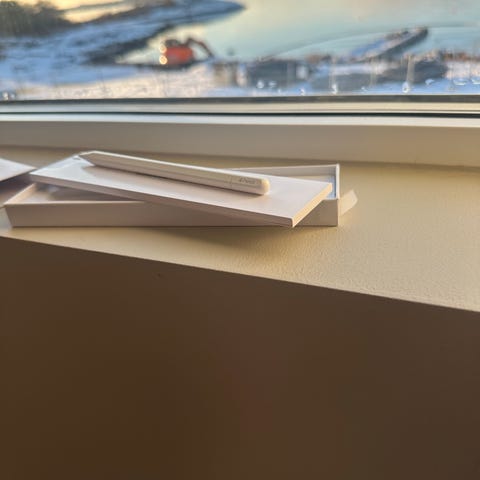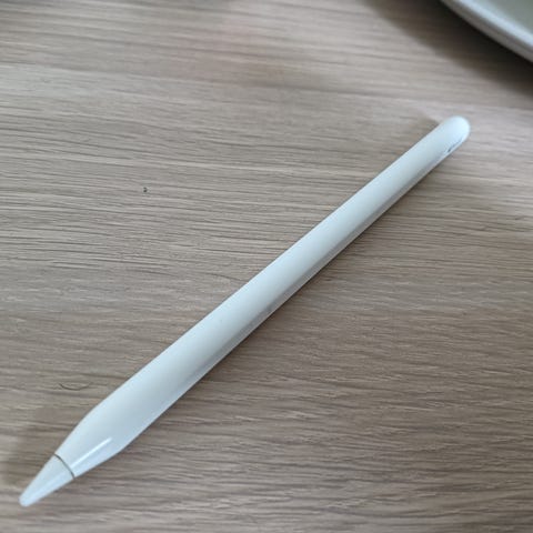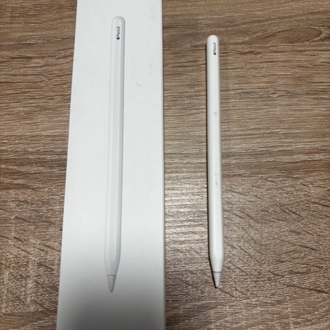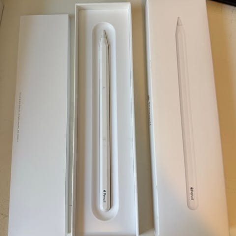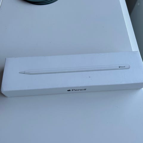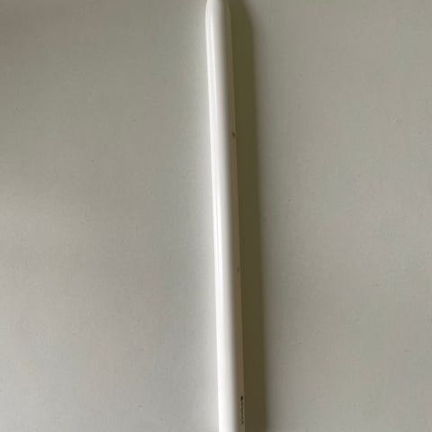 Apple Pencil 1. gen selges ettersom jeg har fått en nyere versjon. Den fungerer helt fint. Et par bruksmerker på lokket ettersom sølvringen som lå på lokket mangler, men den fester seg til pennen som normalt.