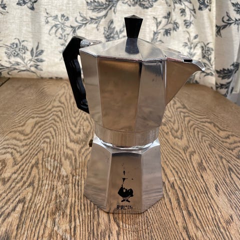 Bialetti original italiensk espressokanne. 18 cm høy, ca 2,7 dl. Italiensk espressokaffe følger med.